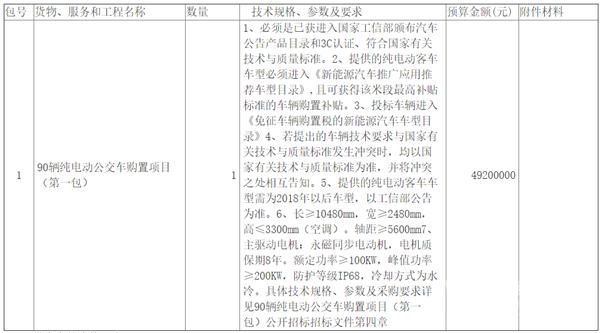 采购项目名称:90辆纯电动公交车购置项目(第一包)