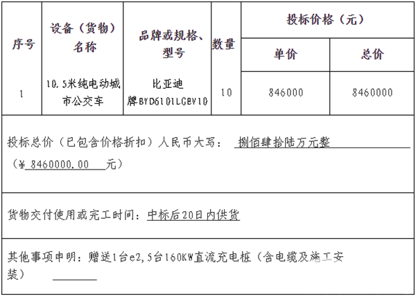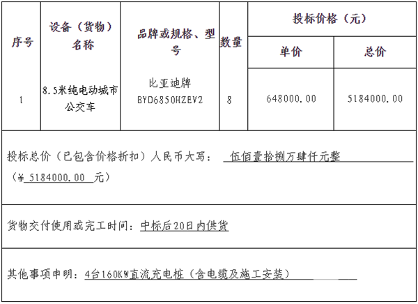 - 广西贵港市公交公司购置100辆新能源公交车项目中标公告
