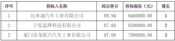 宁夏固原市西吉县纯电动城市公交车采购项目公开招标中标结果公示