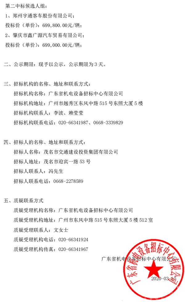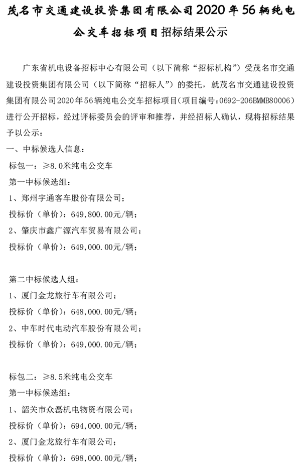 - 广西贵港市公交公司购置100辆新能源公交车项目中标公告