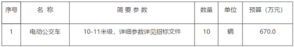 - 深圳巴士集团发布100辆10.5米低地板纯电动公交车采购招标公告