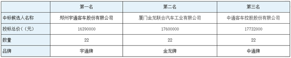9、拟确定中标人:郑州宇通客车股份有限公司