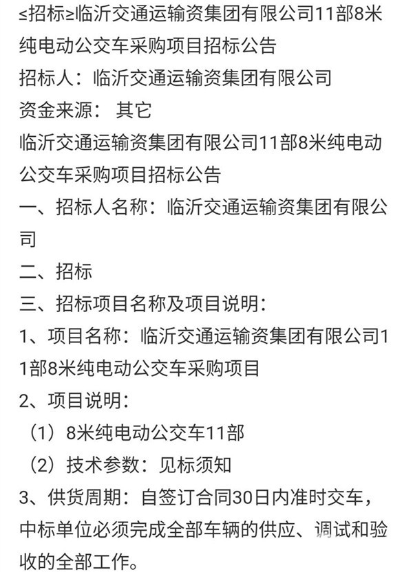 - 潍坊市公共交通集团有限公司32台6米纯电动公交车采购项目