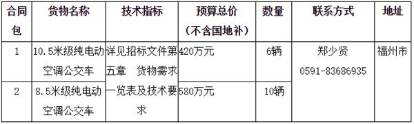 福建省福州经济技术开发区公共交通发展有限公司纯电动公交车招标公告