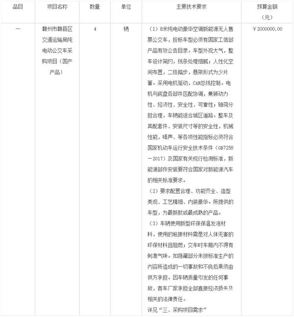 江西省赣州市赣县区交通运输局纯电动公交车采购项目招标公告
