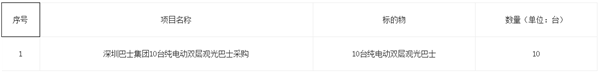 广东省深圳巴士集团10台纯电动双层观光巴士采购招标公告