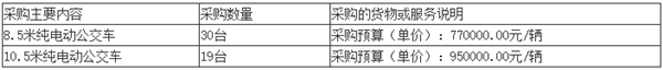 一、项目名称:30台8.5米纯电动公交车和19台10.5米纯电动公交车采购
