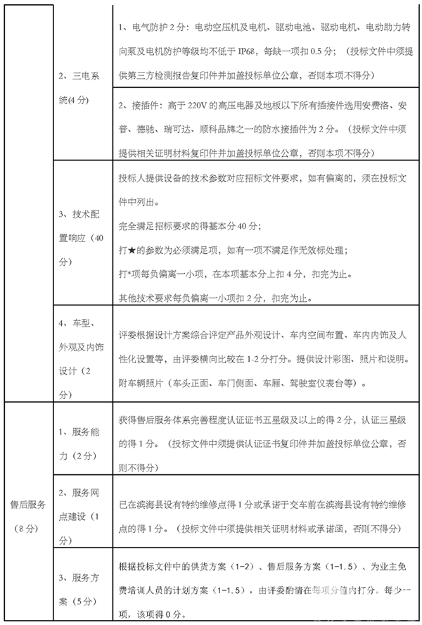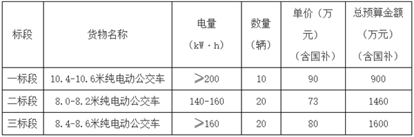 3、滨海交通控股集团计划购买共50辆公交车,其中10.4-10.6米纯电动公交车10辆、8.0-8.2米纯电动公交车20辆、8.4-8.6米长纯电动公交车20辆。各标段投标人负责各标段的车辆生产、交付及车辆验收、与招标人项目中的沟通及协调。