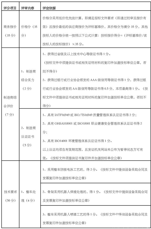 1、商务报价 35分 ;2、制造商综合评价7分;