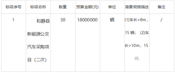 新疆巴音郭楞蒙古自治州和静县新能源公交车采购项目(二次)招标公告