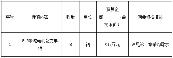 浙江省青田县公共交通有限公司8.5米纯电动公交车公开招标公告