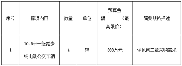 浙江省青田县公共交通有限公司10.5米一级踏步纯电动公交车公开招标公告