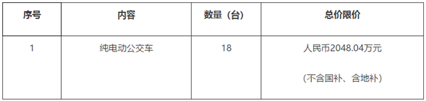 1纯电动公交车18人民币2048.04万元