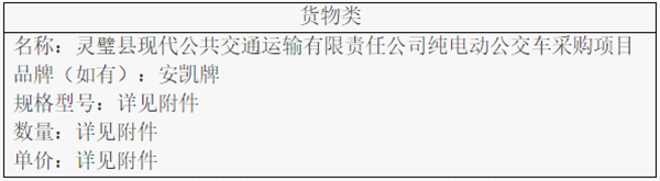 安徽省宿州市灵璧县现代公共交通运输有限责任公司纯电动公交车中标公告