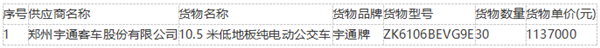 - 深圳巴士集团100台10.5米低地板纯电动公交车辆采购