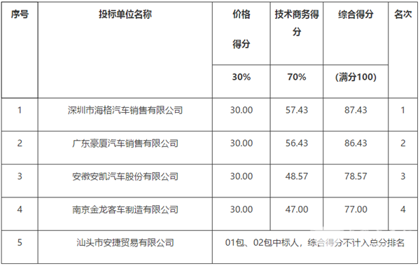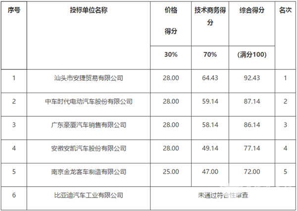 广东省惠州交投巴士有限公司2020年公交车采购项目中标公告