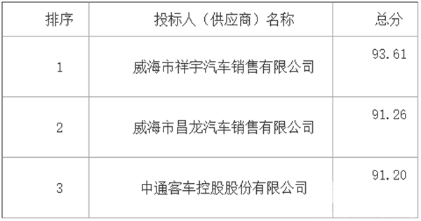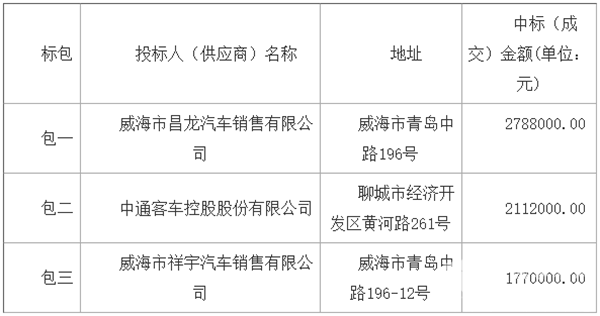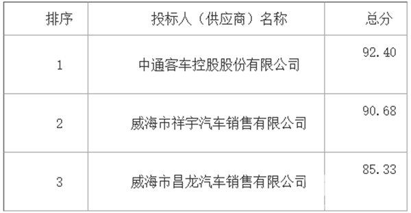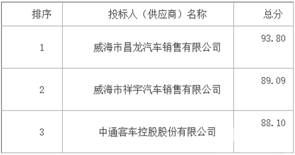 山东省荣成市城乡公共交通有限公司关于电动公交车项目中标公告