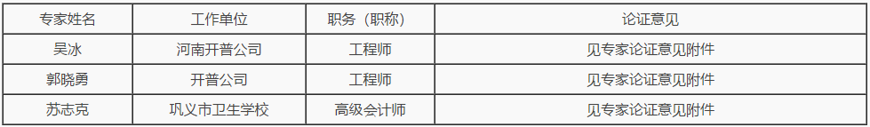 吴冰河南开普公司工程师见专家论证意见附件