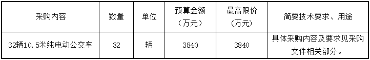 浙江温州市交运集团有限公司关于32辆10.5米纯电动公交车项目的采购公告