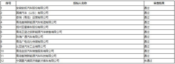 资格审查符合性评审结果