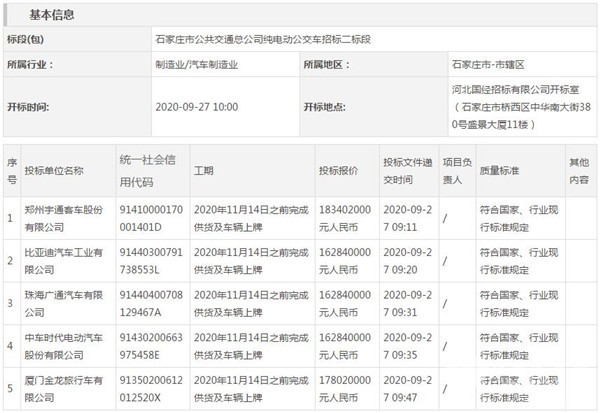 河北省石家庄市公共交通总公司纯电动公交车二标段招标公告