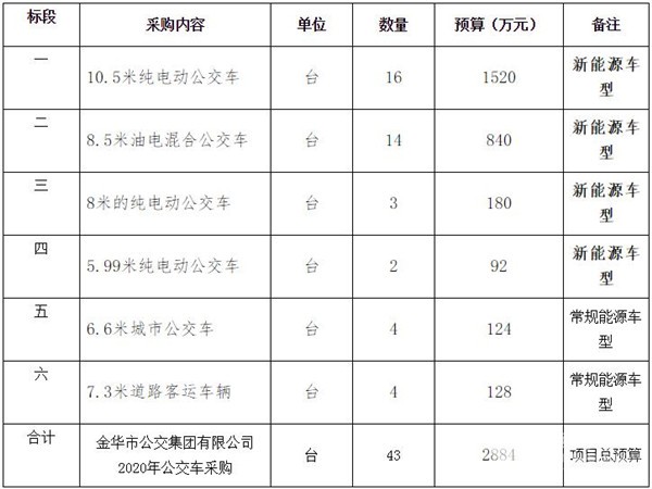 浙江省金华市公交集团有限公司2020年度公交车采购项目招标公告