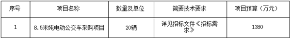 浙江省永康市城乡公共交通有限公司8.50米纯电动公交车采购项目招标公告