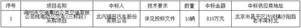 浙江省湖州市交通集团公共交通有限公司纯电动公交车(三标段)中标公告