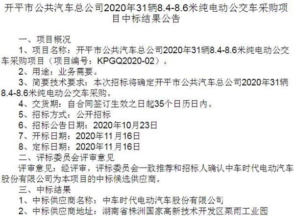 - 广西贵港市公交公司购置100辆新能源公交车项目中标公告