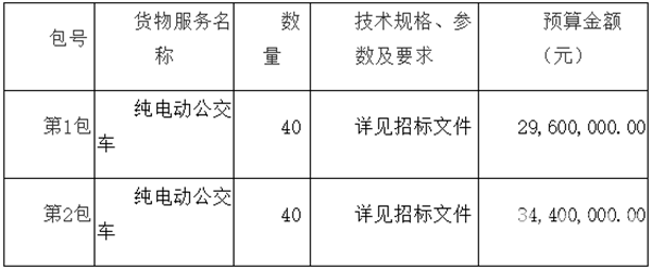 通辽市政府采购中心根据通辽市交通运输局通财购备字(电子)[2020]00250号的要求,受通辽市交通运输局委托,采用公开招标方式采购纯电动公交车,欢迎符合条件的国内投标人前来参加。