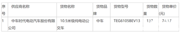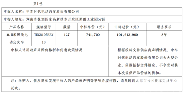 中标一亿!中车电动中标太原公交137辆10.5米纯电动公交车采购项目