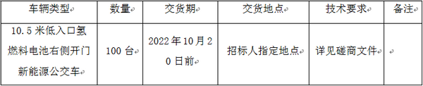 1.1项目概况:郑州市公共交通集团有限公司拟采购100台10.5米低入口氢燃料电池右侧开门新能源公交车