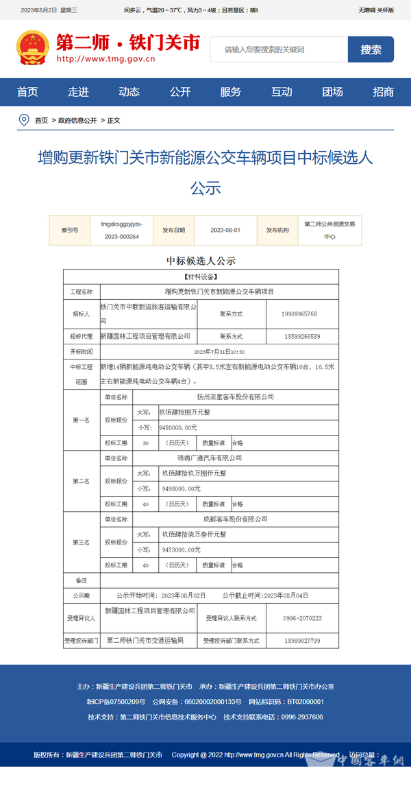 - 广西贵港市公交公司购置100辆新能源公交车项目中标公告