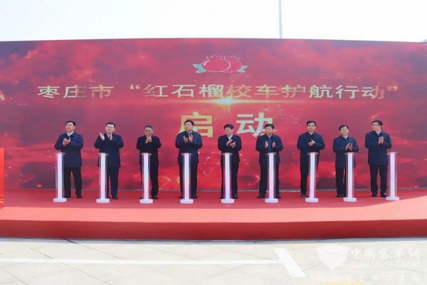 在启动仪式上,聂存明董事长指出,枣庄市交运投资集团坚持把抓好校车运营服务作为落实民生工程、彰显国企担当的头等大事。今天开通首批“红石榴号”校车,标志着“交运校车、好运平安”品牌内涵更加丰富,是校车运营的一件喜事,我们深感使命光荣、责任重大。我们在“红石榴号”校车内布置了民族团结文化宣传画、展示56个民族服饰等民族团结文化元素,通过开展多形式、富有民族特色的活动,讲好中华民族故事、挖掘红石榴内涵,让广大中小学生在耳濡目染中牢记石榴果的民族团结意蕴,在上下学出行中感受铸牢中华民族共同体意识,用共同理想信念凝聚“强国建设、民族复兴”的磅礴力量。