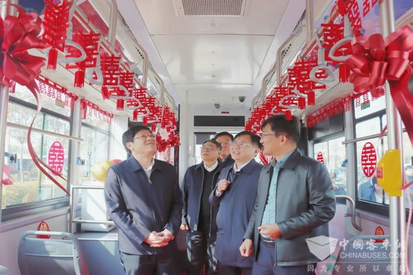 启动仪式后,与会领导共同参观了枣庄市“红石榴号”校车、枣庄公交历史记忆馆、“红石榴幸福号”婚庆公交、创新工作室的红石榴喜馍。
