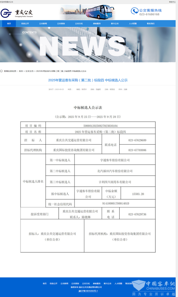 - 2025年青岛市主城区新能源公交车辆更新购置项目(六)中标公告