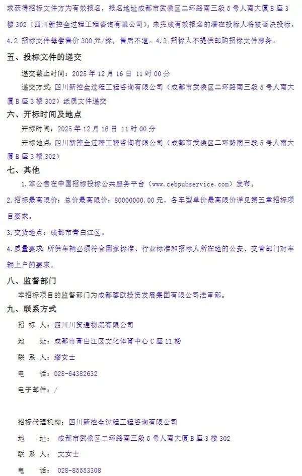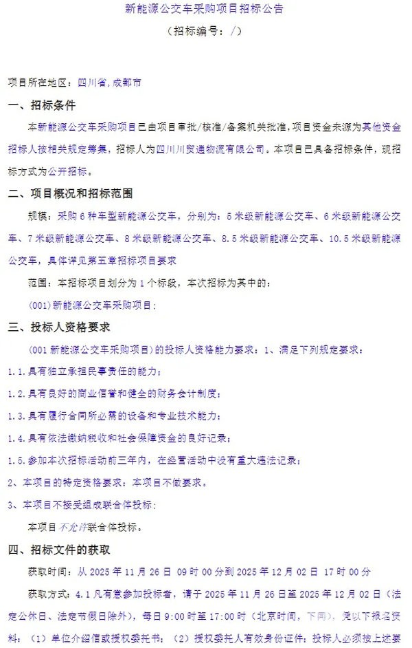 - 眉山市展通公交客运有限公司30辆纯电动公交车采购招标公告