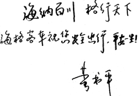 华彩谱九州, 越峰迎未来; 恭喜国民富, 贺岁商鸿策; 新春新气象, 年安人更安; 祝各方宾朋在新的一年里事业兴旺,阖家幸福!