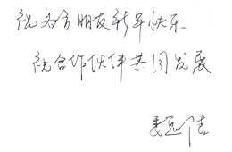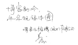 感谢多年来关心爱护比泽尔的各界朋友,在您的支持下,截止到2008年年底,已有超过280000台比泽尔应用于中国客车上。 值此2009年新春到来之际,我恭祝大家:新春快乐,身体康健,阖家幸福,牛年大吉! 愿我们:携手共发展,事业更兴旺!”