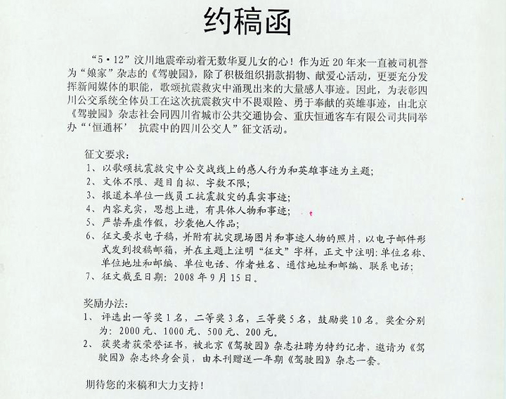 “恒通杯”抗震中的四川公交人征文活动专题报道: