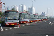 2008年8月8日,第29届奥林匹克运动会将在北京盛大开幕,届时将有上百万人涌进京城,交通问题倍受关注。目前,北京已备齐上万台旅游大巴及城市公交,以应对奥运期间的巨大客流冲击