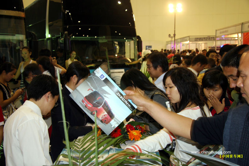 宇通客车展台观众络绎不绝争抢宇通产品资料