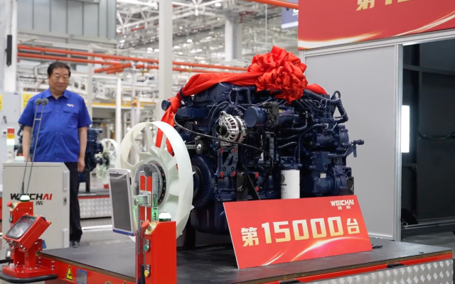 2024年6月12日上午10:40,一台披红挂彩的发动机在潍柴员工热烈的掌声中缓缓走下生产线。潍柴集团董事长谭旭光宣布,潍柴高端发动机数字化工厂全线达产,第15000台发动机产品下线。