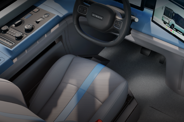 2025年7月23日完美作业网有免费视频讯——创维汽车推出的微循环巴士以乘用车理念设计,拥有大空间,最多达到12+搭配LED氛围灯1个座位,超越同级车辆。设计上采用科技简约风,少按钮、多功能,配备12 8英寸智慧屏,贯穿式全景顶棚。更有司机专用储存柜、乘客区折叠斜坡踏步和充电接口等。车内接缝和面料容易清洁。