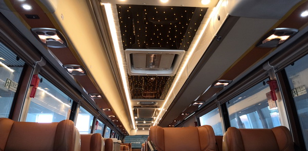 YBL6148H高端旅游客车给旅客更加舒适的乘坐体验,整车配备商务豪华座椅和独立影视系统,让旅途不再寂寞劳累;先进的空气净化系统,保证车内空气的优良品质,让旅客如沐春风;隐藏式遮阳帘,让旅途中随时享受阳光带来的乐趣;配备航空式行李架,让随身行李更加有序,避免视线所及的杂乱,再加上星空顶的布局以及独特的车内色彩搭配,使车内环境更加温馨、更加赏心悦目;车载独立卫生间、饮水机和冰箱等人性化配备,给旅客身处头等舱的尊享体验,享受更加惬意的美好时光。