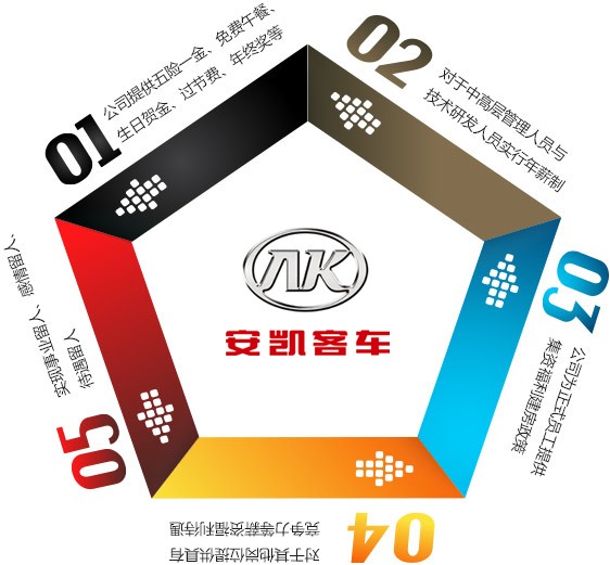 安凯的大门对所有人才都是敞开的,是人才,来到安凯必定会有大的作为。安凯的人才观就是要使每一位员工都能成为有用之才,使人才们感到自己的价值。安凯的措施也很具体,工资收入、住房、福利待遇都向技术人员、高素质人才倾斜,为人才解决工作、生活上的后顾之忧。 安凯袒露给所有人才是这样一种广阔的胸怀:“给你一个空间,让你尽情发挥,直到你发现自己的才能不够用。”