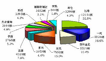 从累计市场份额看,江淮居第一,同比下降1.4个百分点, 一汽下降2.6个百分点, 东风下降1.1个百分点,苏州金龙下降1.0个百分点,常州下降1.3个百分点,亚星下降0.3个百分点,宇通增长1.7个百分点,安凯增长0.6个百分点,丹东黄海增长3.7个百分点。