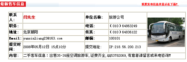 通过二手客车信息交流反馈通道将您的申请提交给我们,也可以通过电话或者邮件的方式与我们取得联系,申请。
